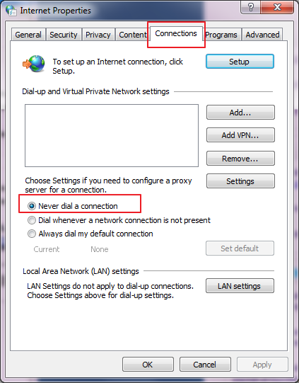 You are here: Home » Windows » To stop dial-up connection dialog from keeping popping up